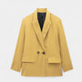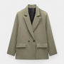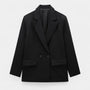 A double-breasted blazer with notched lapels and a clean, minimalist profile. Cut to hip length with a relaxed, slightly boxy line, it adds instant structure to denim or dress pants.