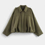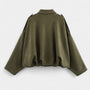 A cropped, military-inspired jacket with epaulettes, a sharp point collar and a concealed front for a clean look. The relaxed, boxy cut and wide sleeves create a statement silhouette that sits just right over high-waisted bottoms.
