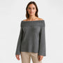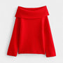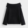 An off-shoulder sweater with a wide foldover neckline and allover ribbing. Cut to hip length in a relaxed silhouette, it slips easily over denim or skirts for day-to-night ease.