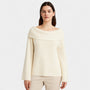 The broad collar frames the shoulders, while the clean rib texture gives gentle structure and a flattering drape.